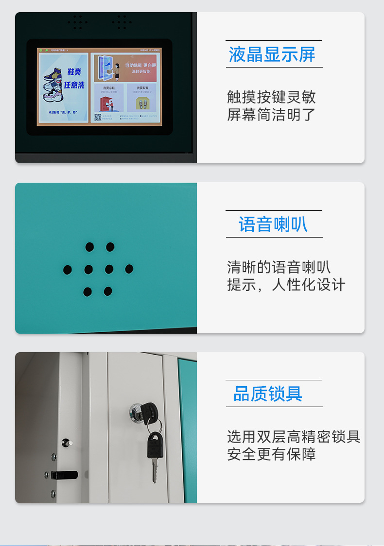 智能洗鞋柜,用戶掃描洗鞋柜,進(jìn)入存鞋、取鞋、下單三個操作步驟,化繁為簡讓使用更簡潔。